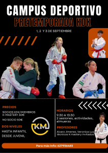 Colaborando en la conciliación familiar, el CLUB un año más crea este campus de pretemporada en el que además de disfrutar del karate, realizaremos otras actividades lúdico recreativas que harán que los más pequeños vuelvan a engancharse a su actividad favorita y disfruten de unas mañanas entre sus amigos y amigas.